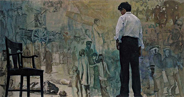 陳逸飛:踱步,1979年,布面油畫,186x356cm。