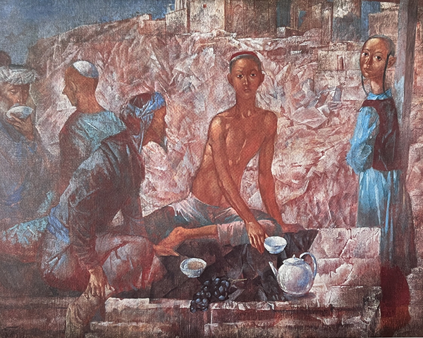 沃德金油畫《撒馬爾罕的一家茶館》.1921。
