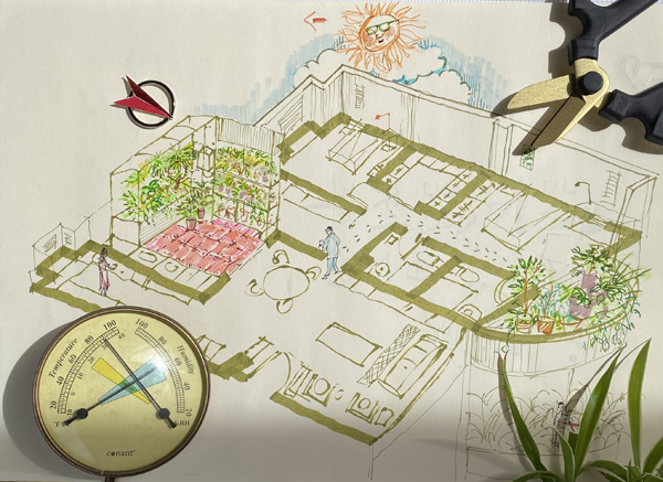 依據日照分析,陽光充足的南苑,必是植物們的天堂;照不到太陽的北園,會太陰暗而效果不佳,結果卻相反。