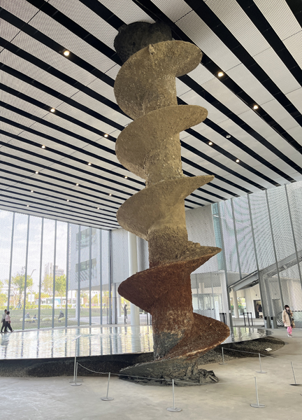 藝術家阿德里安.提爾提奧(Adrien Tirtiaux)《後博物館證據(探鑽)》以穿越展廳的結構揭示建築工程與勞動痕跡